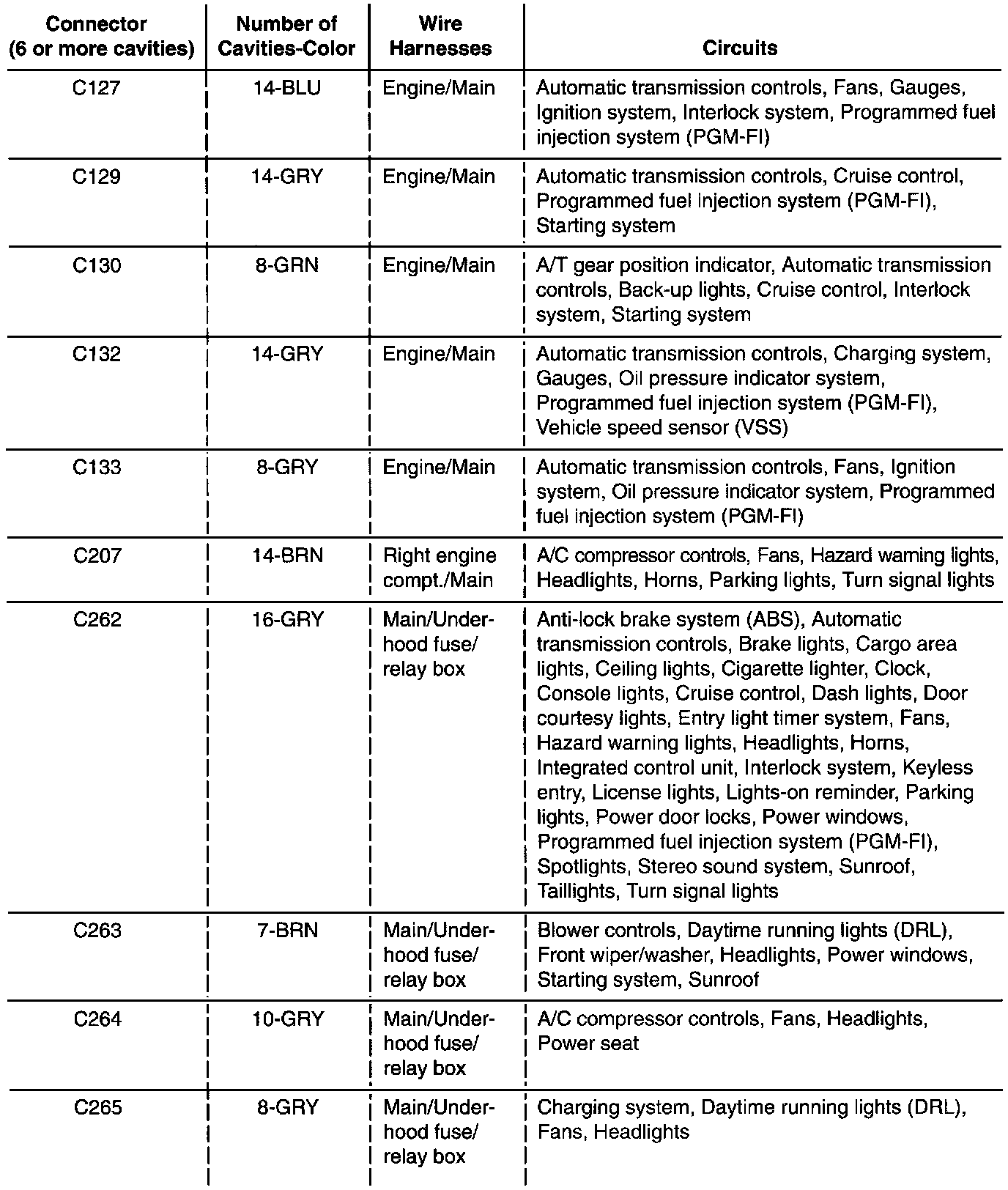 Circuit Identification For In-Line Fuse Box Connectors (Part 4 Of 4):