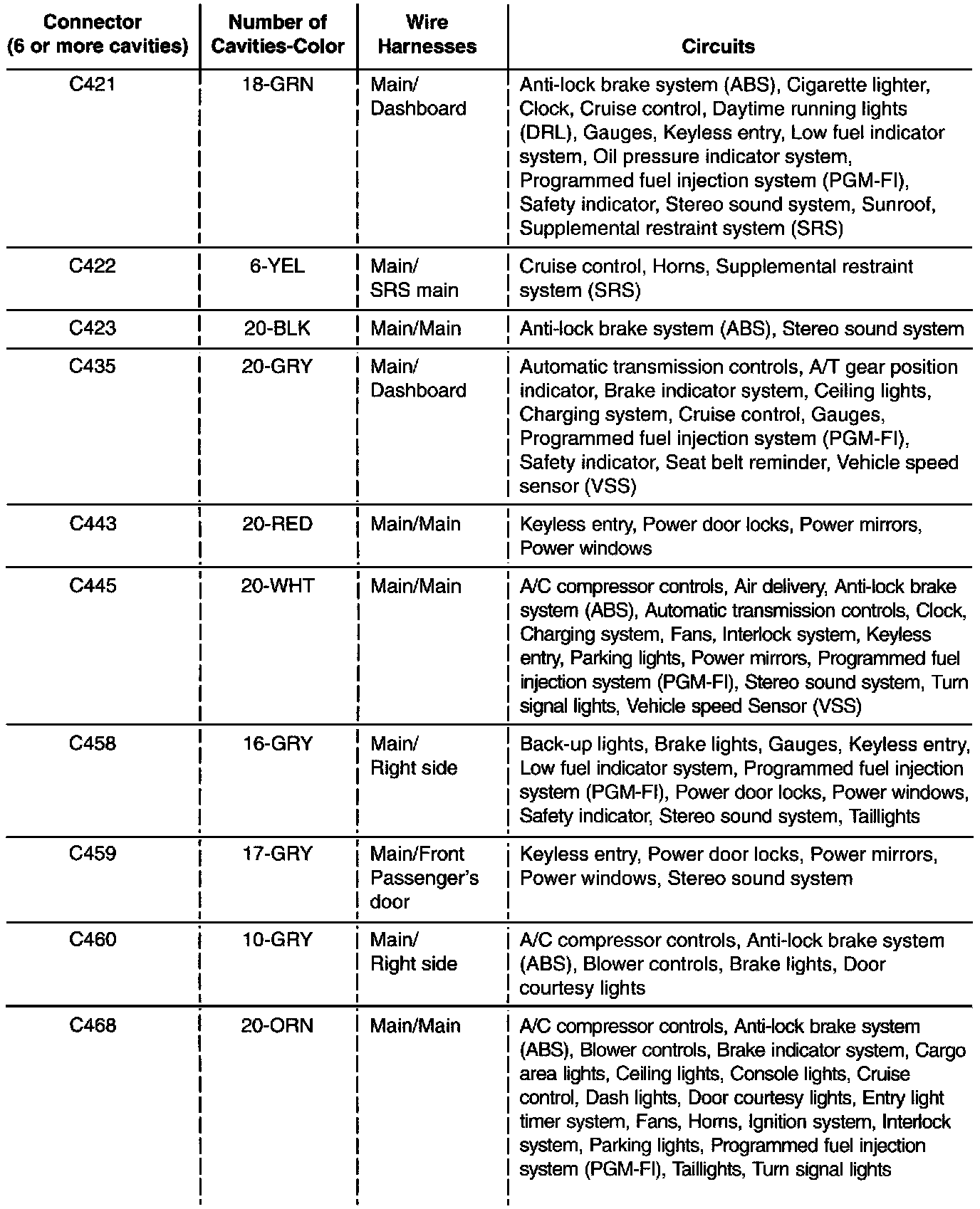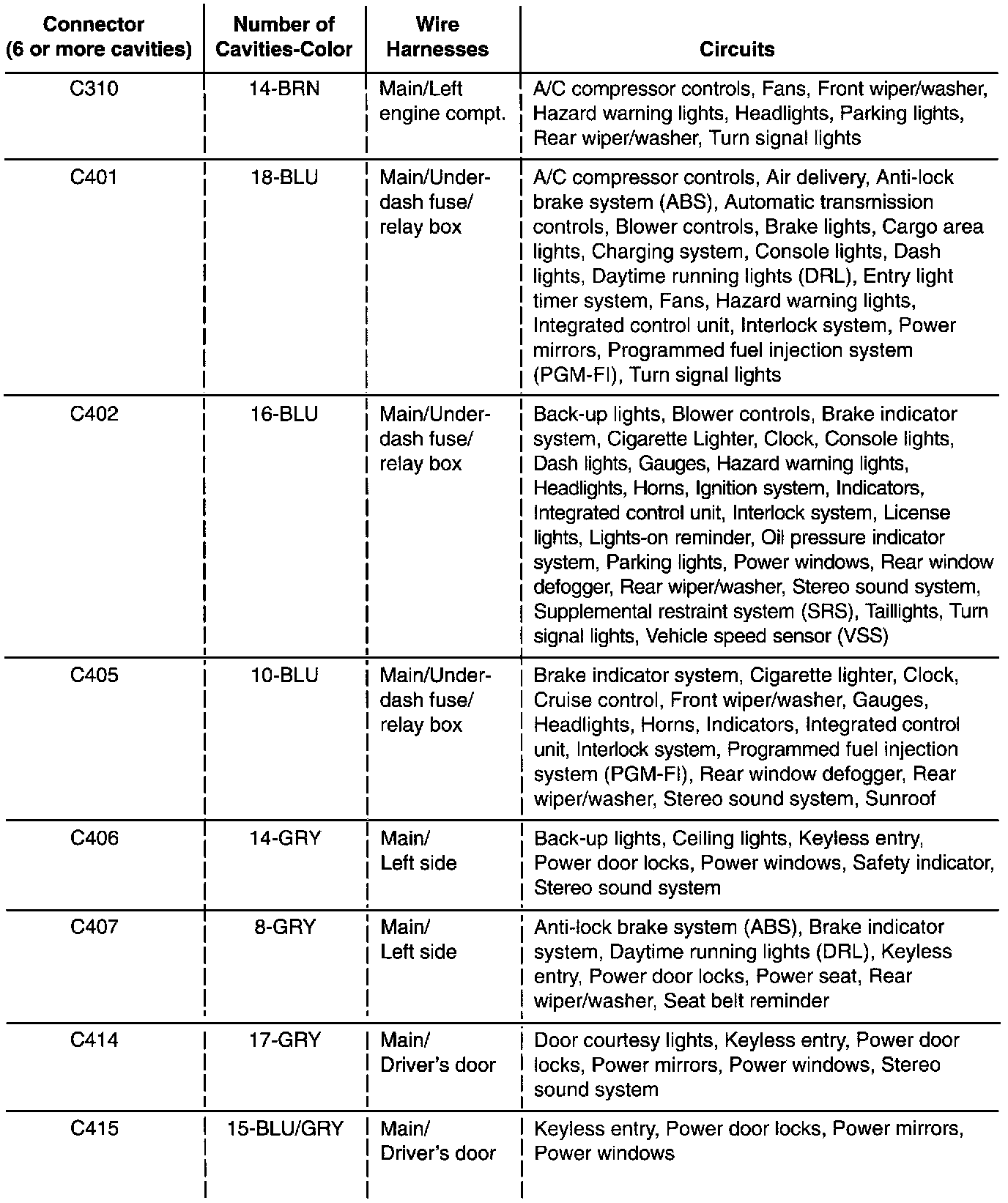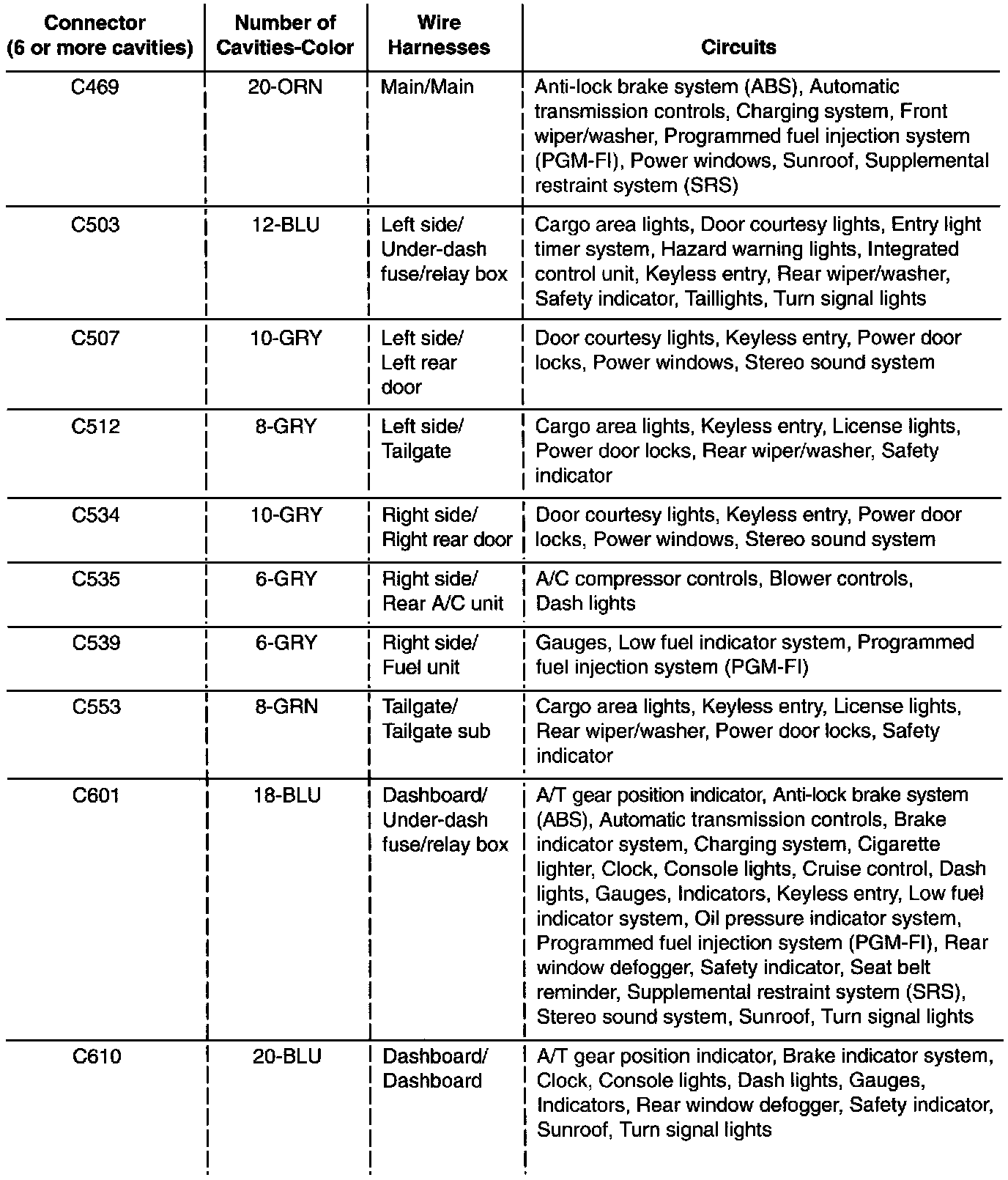 Home >> Honda >> 1995 >> Odyssey L4-2.2L SOHC >> Repair and Diagnosis >> Powertrain Management >> Computers and Control Systems >> Body Control Module >> Diagrams >> Diagram Information and Instructions >> Inline Connector Circuit Identification >> Connector/Circuit ID