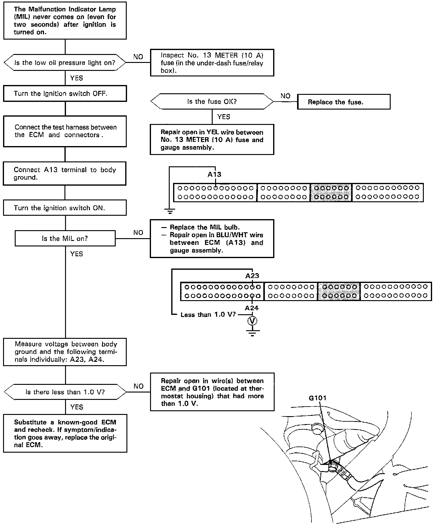 Home >> Honda >> 1995 >> Prelude L4-2.2L SOHC >> Repair and Diagnosis >> Powertrain Management >> Relays and Modules - Powertrain Management >> Relays and Modules - Computers and Control Systems >> Engine Control Module >> Testing and Inspection >> Troubleshooting Flowchart
