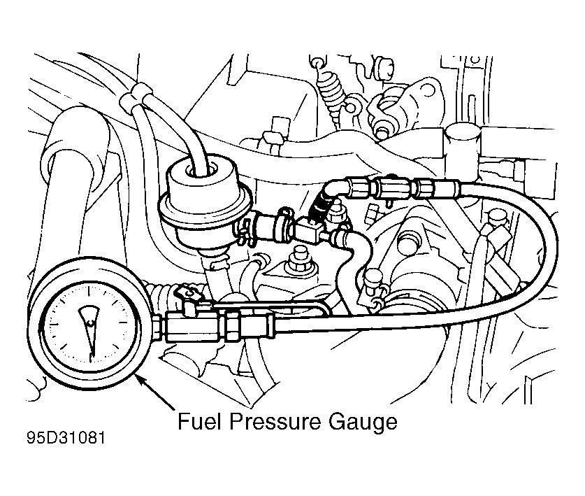 - Release fuel pressure. See FUEL SYSTEM PRESSURE RELEASE . Install a fuel pressure gauge between fuel pressure regulator and fuel distributor pipe. See Fig 1 . Bleed air from fuel line going to pressure gauge.