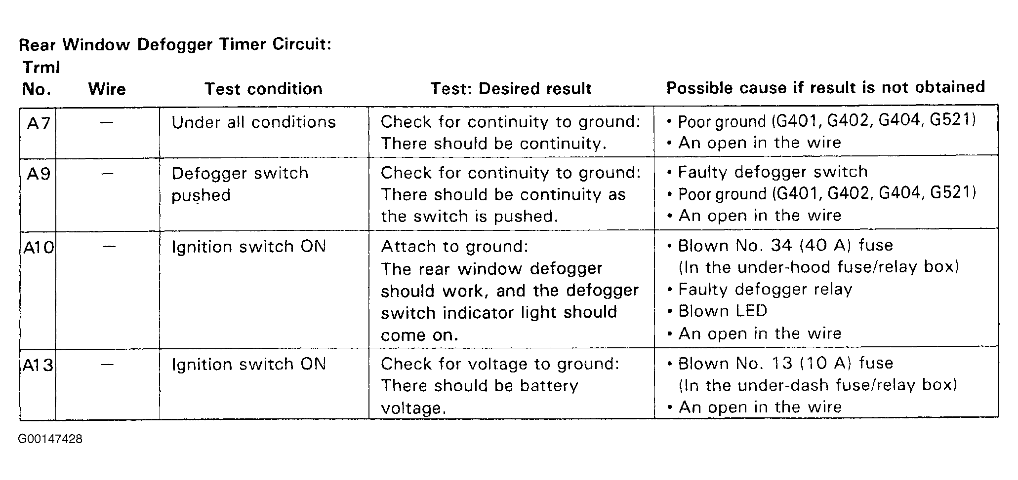 Fig 1: Rear Window Defogger Timer Circuit Input Test