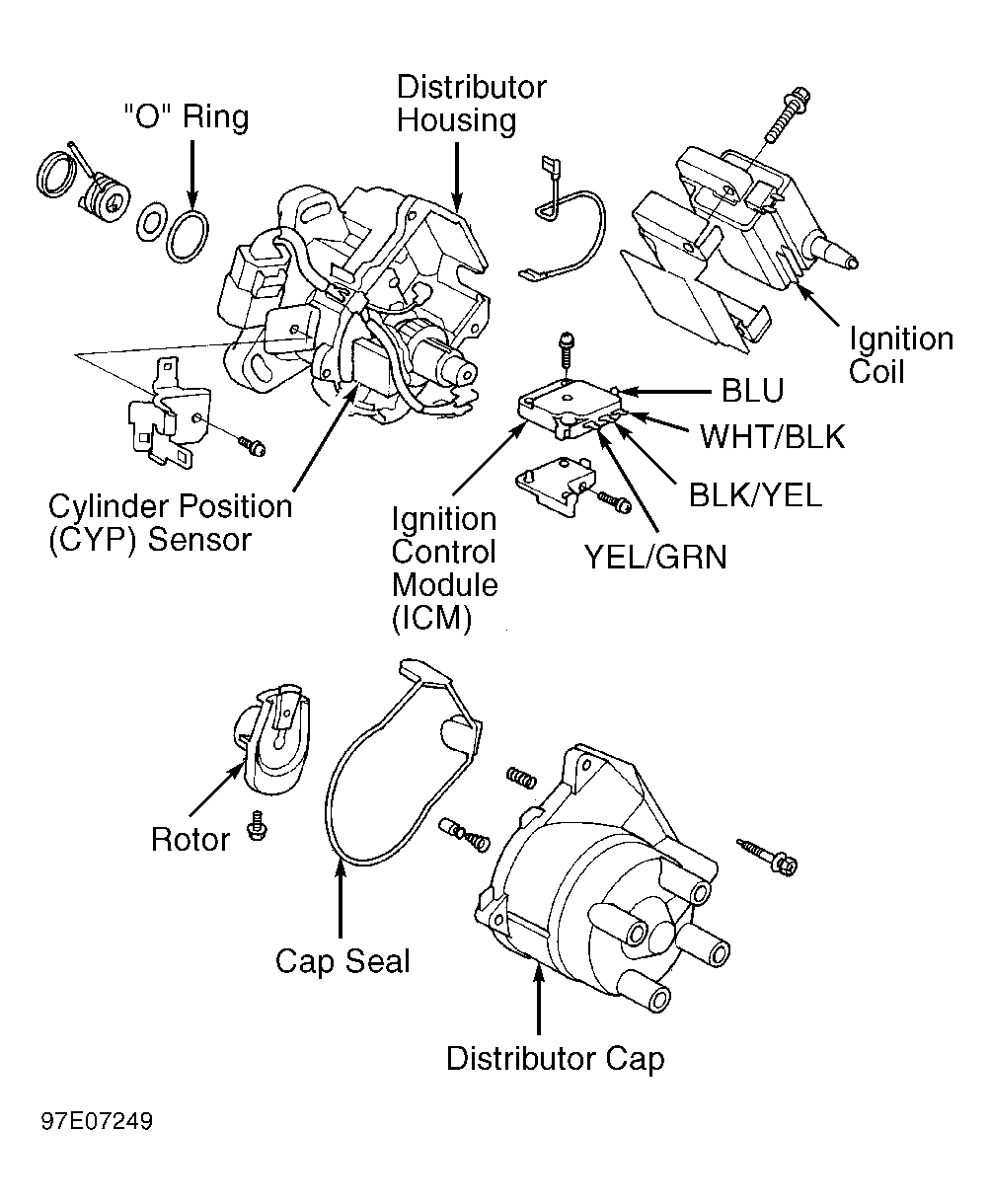 NOTE: If MIL comes on, check for Diagnostic Trouble Codes (DTCs). See appropriate testing in TESTS W/CODES article. Before preforming IGNITION CONTROL MODULE INPUT TEST  , ensure ignition, fuel and emissions systems are operating properly. Ignition Control Module (ICM) is located in distributor housing. See Figure .