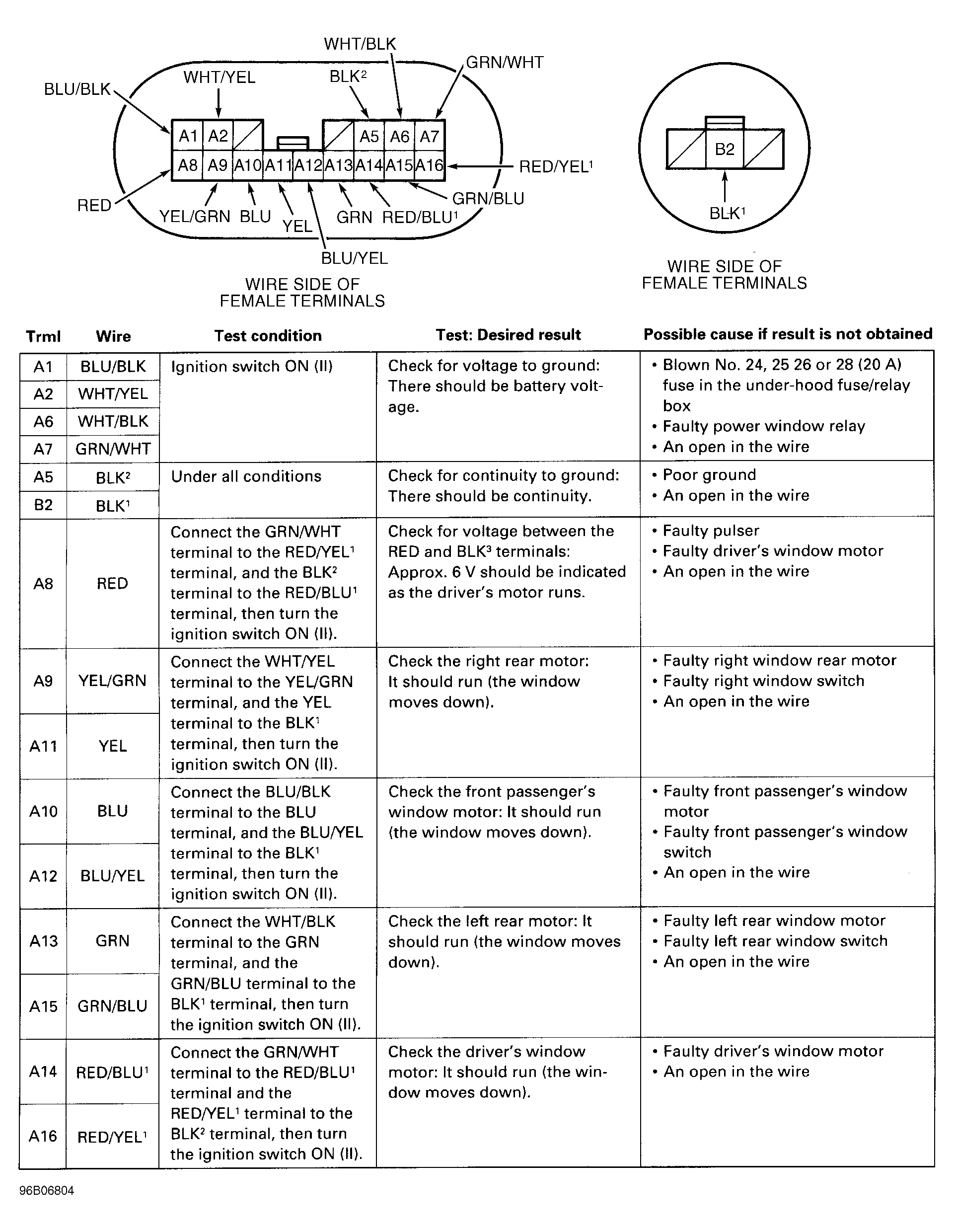 Home >> Honda >> 1998 >> Odyssey EX >> Repair and Diagnosis >> Body & Frame >> Windows >> Power Window System >> Component Tests >> Switch Input Tests