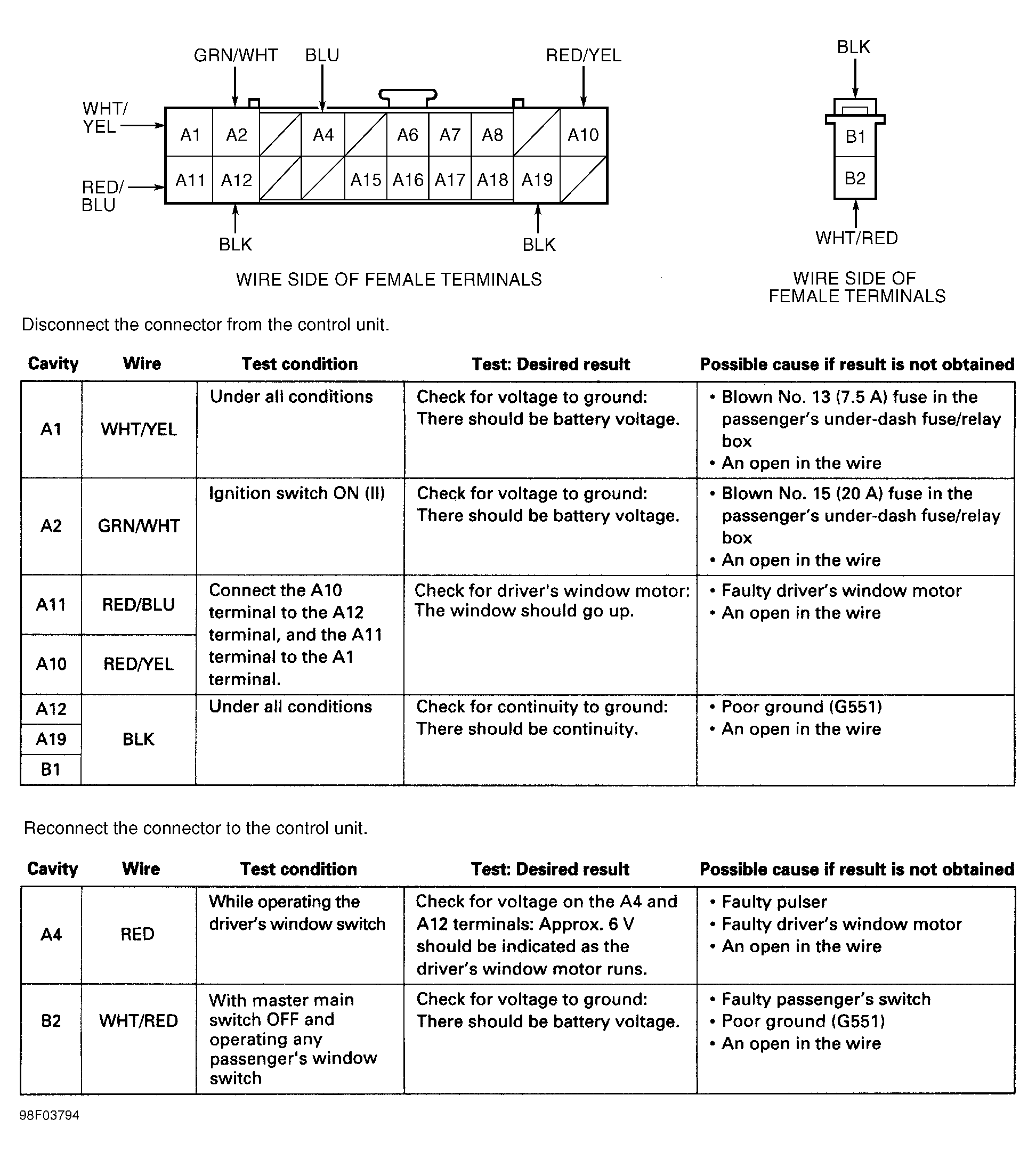 Home >> Honda >> 1998 >> Prelude Base, Standard >> Repair and Diagnosis >> Body & Frame >> Power Windows >> System Tests >> Multiplex Control Unit Input Tests >> Door Control Unit Input Test