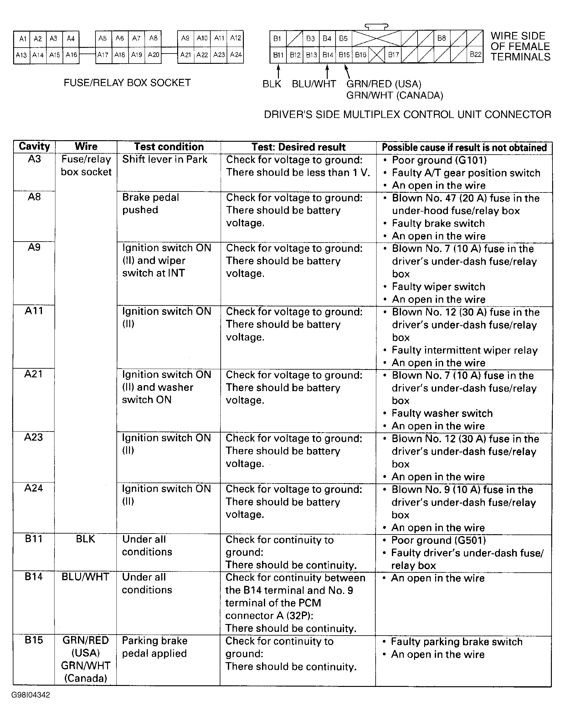 Home >> Honda >> 1999 >> Civic Si >> Repair and Diagnosis (Single Page) >> Accessories & Equipment >> Wiper/Washer Systems >> Wiper System & Washer System >> System Tests >> Driver's Multiplex Control Unit Input Test >> Odyssey