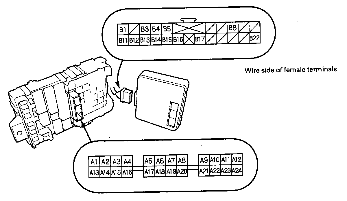 7. Remove the passenger's unit from the passenger's under-dash fuse/relay box, and disconnect its connector.
