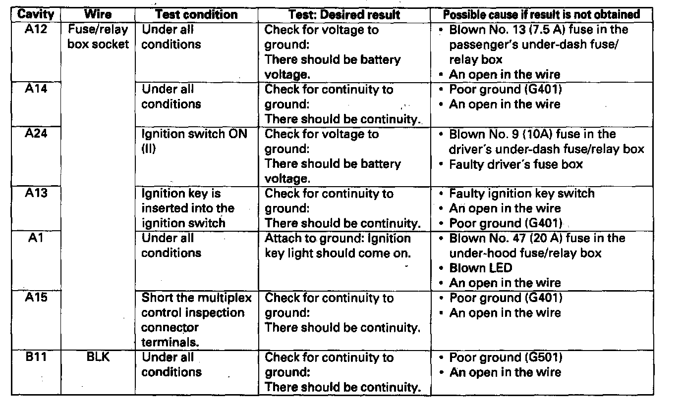 Home >> Honda >> 1999 >> Odyssey LX V6-3.5L >> Repair and Diagnosis >> Body and Frame >> Body Control Systems >> Body Control Module >> Testing and Inspection >> Multiplex Control Unit Input Test