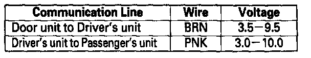 - Check for voltage in the BRN and PNK lines between control units. These should be about 12 volts in the sleep mode.