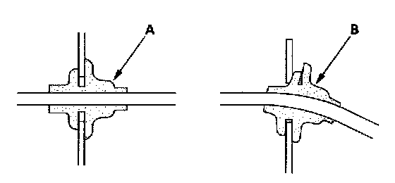 - Seat grommets in their grooves properly (A). Do not leave grommets distorted (B).
