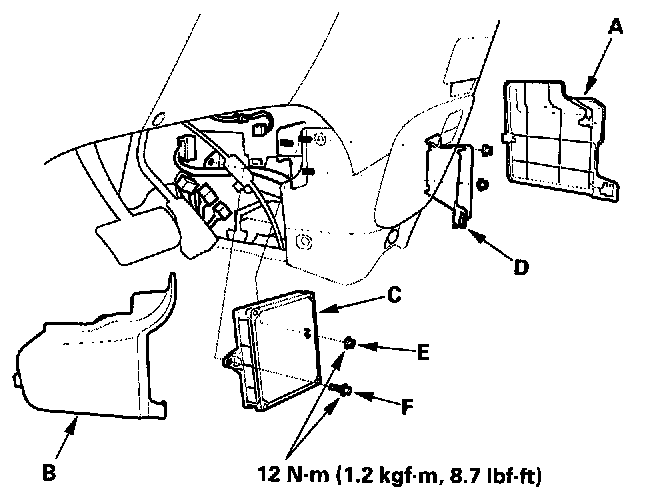 3. Remove the PCM mounting bolt (F) and remove the PCM.