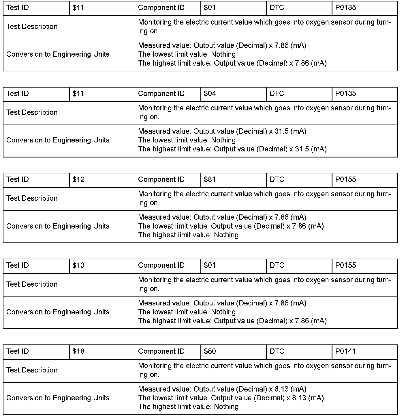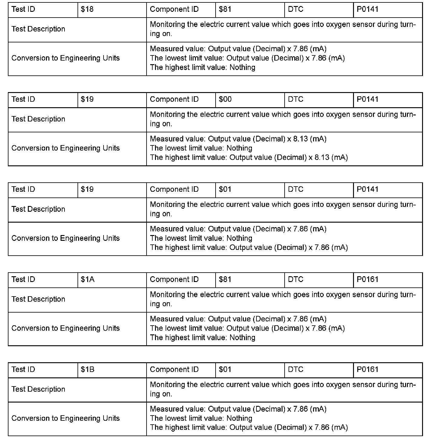 SAE J1979 Mode $06 Information by Test ID