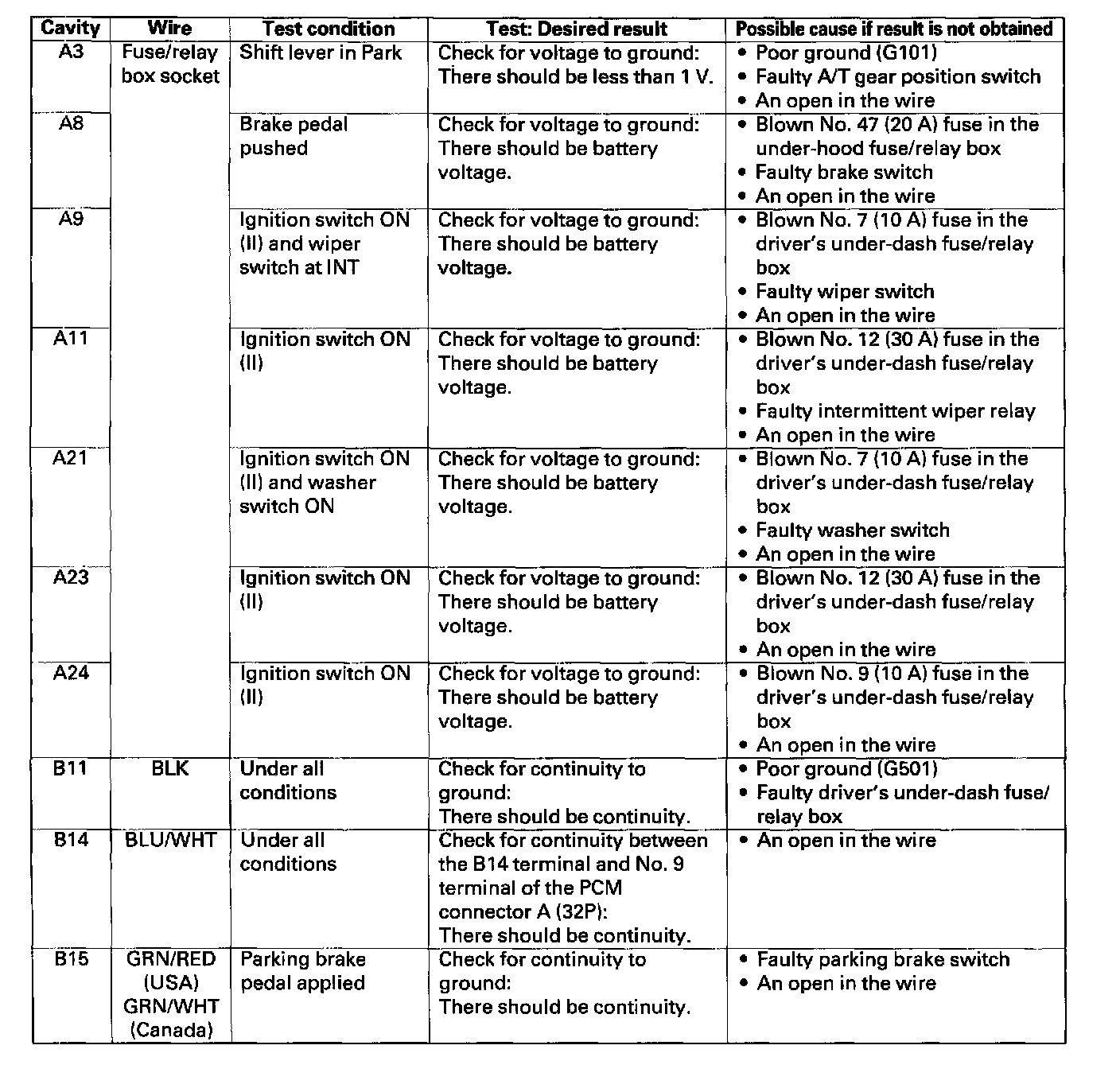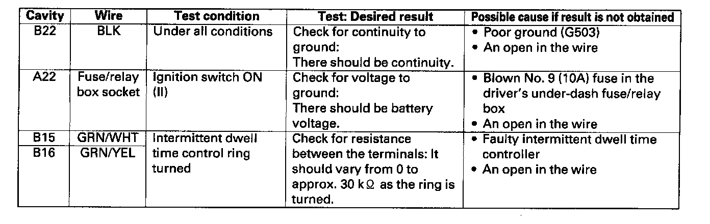 Home >> Honda >> 1999 >> Odyssey LX V6-3.5L >> Repair and Diagnosis >> Wiper and Washer Systems >> Windshield Washer Control Module >> Testing and Inspection
