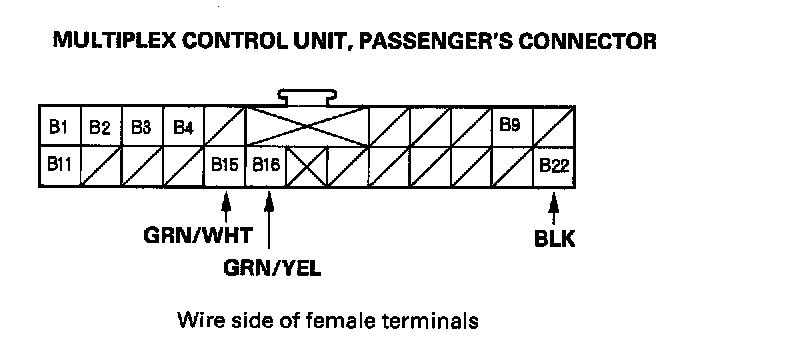 2. Remove the driver's multiplex control unit from the driver's under-dash fuse/relay box, and disconnect its connector.