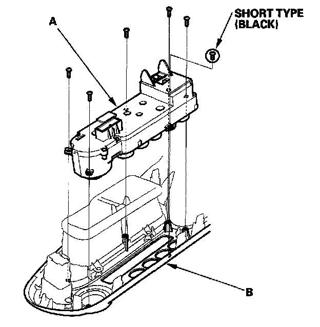 - Be sure to install the short black self-tapping screw in the position shown. If a longer screw is used, it will damage the instrument panel.