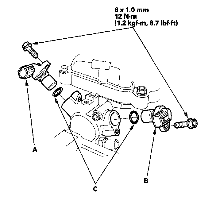 2. Install the TDC1 sensor and the TDC2 sensor using new O-rings (C).