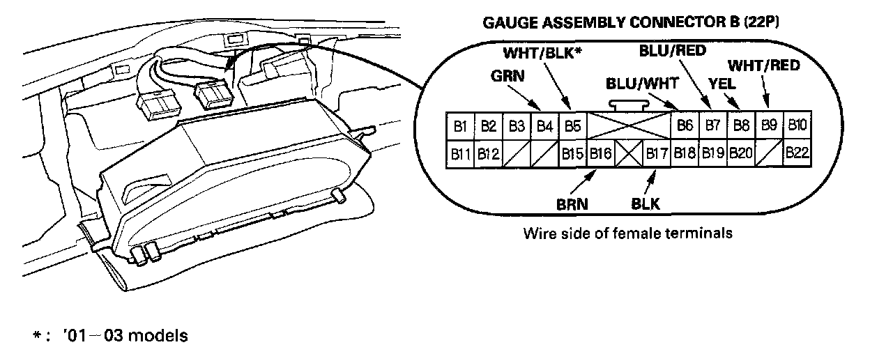 2. Disconnect the 22P connector from the gauge assembly.