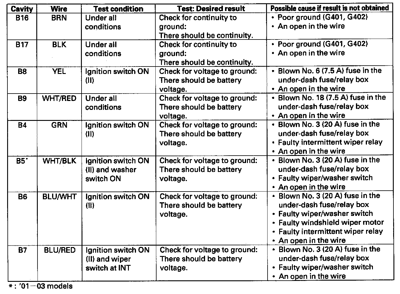 Home >> Honda >> 2000 >> Insight L3-1.0L Hybrid >> Repair and Diagnosis >> Wiper and Washer Systems >> Wiper Control Module >> Testing and Inspection