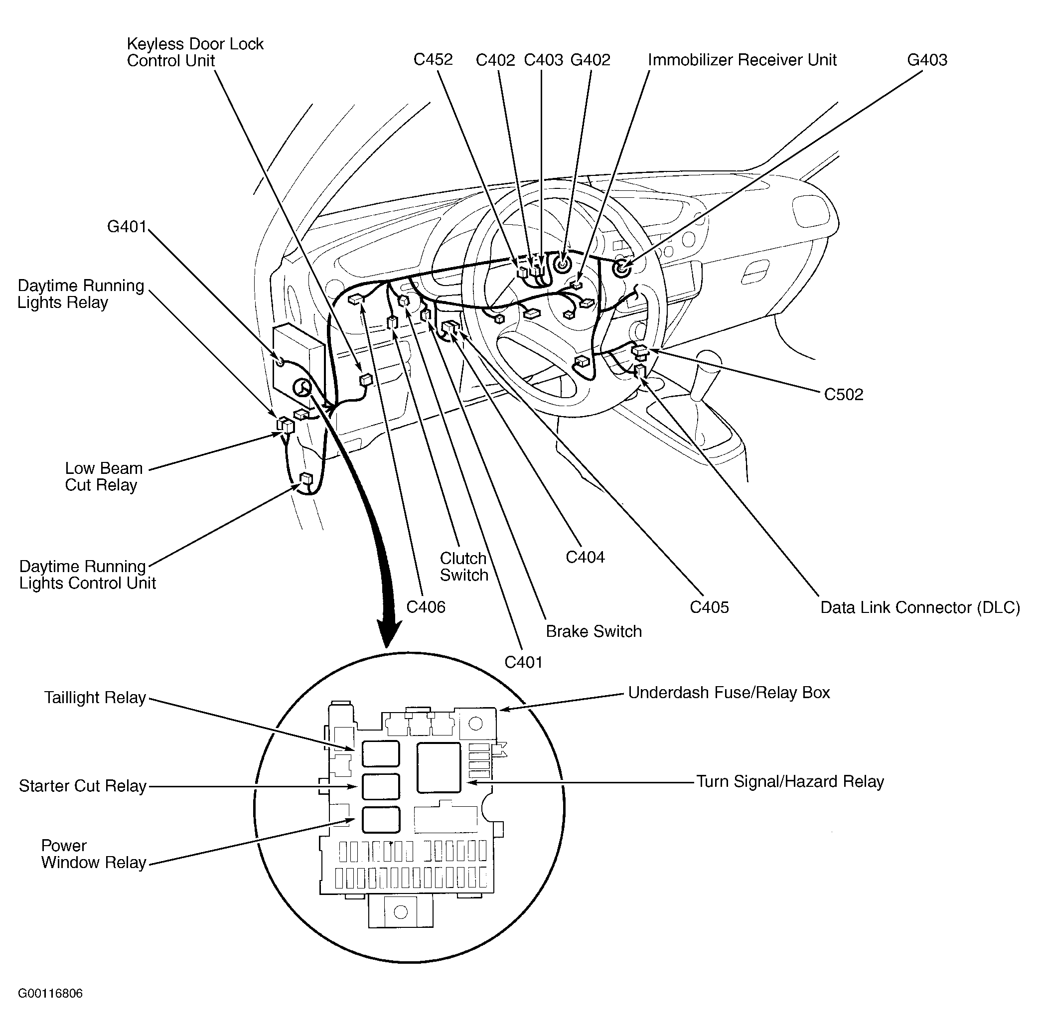Daytime Running Lights Control Unit Under left side of dash. See Figure .