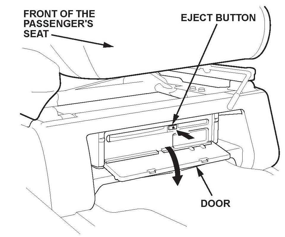 6. Insert the replacement navigation DVD with the writing side up, then close the door.