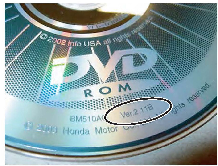 ^ If it is 2.05B or earlier, do not load the navigation DVD (version 2.11C). This navigation DVD does not work with DVDs stamped 2.05B or earlier. Return the vehicle to the customer, and go over the Personal Address and Previous Destinations features.