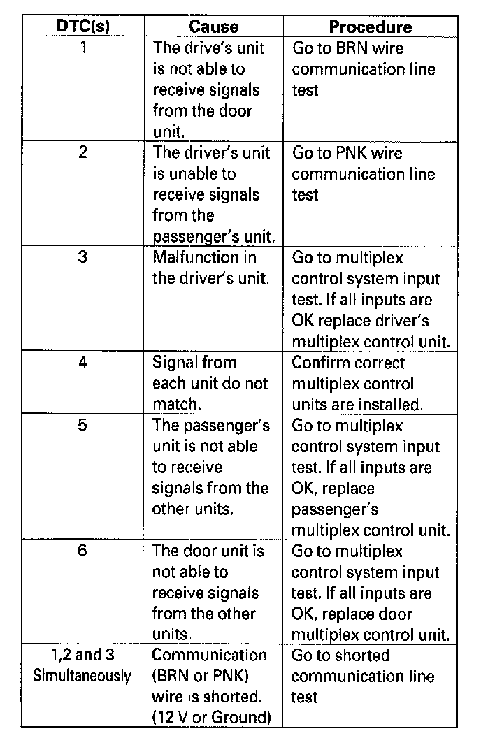 Mode 1 is a communication line and CPU self test. If a problem occurs on a communication wire or with an individual control unit, multiplex system will store a DTC as long as the fault is still present.