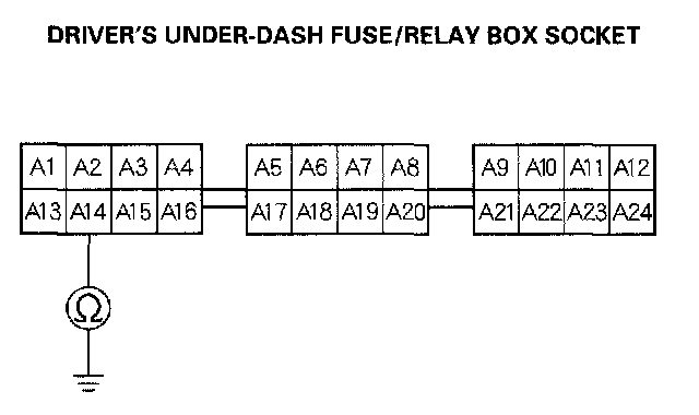 11. Check for continuity between No.14 terminal of the driver's under-dash fuse/relay box socket and body ground.