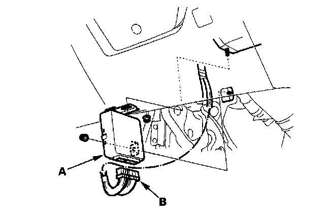Disconnect the ABS control unit connectors (B).