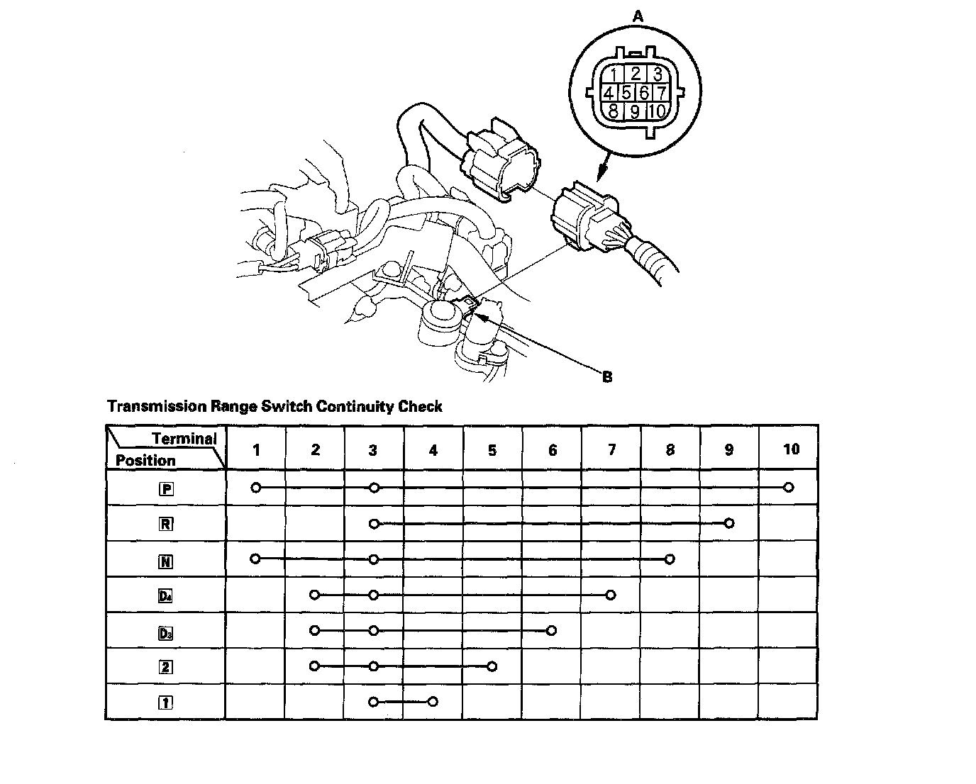 Home >> Honda >> 2000 >> Odyssey EX V6-3.5L >> Repair and Diagnosis >> Powertrain Management >> Computers and Control Systems >> Transmission Position Sensor/Switch >> Testing and Inspection