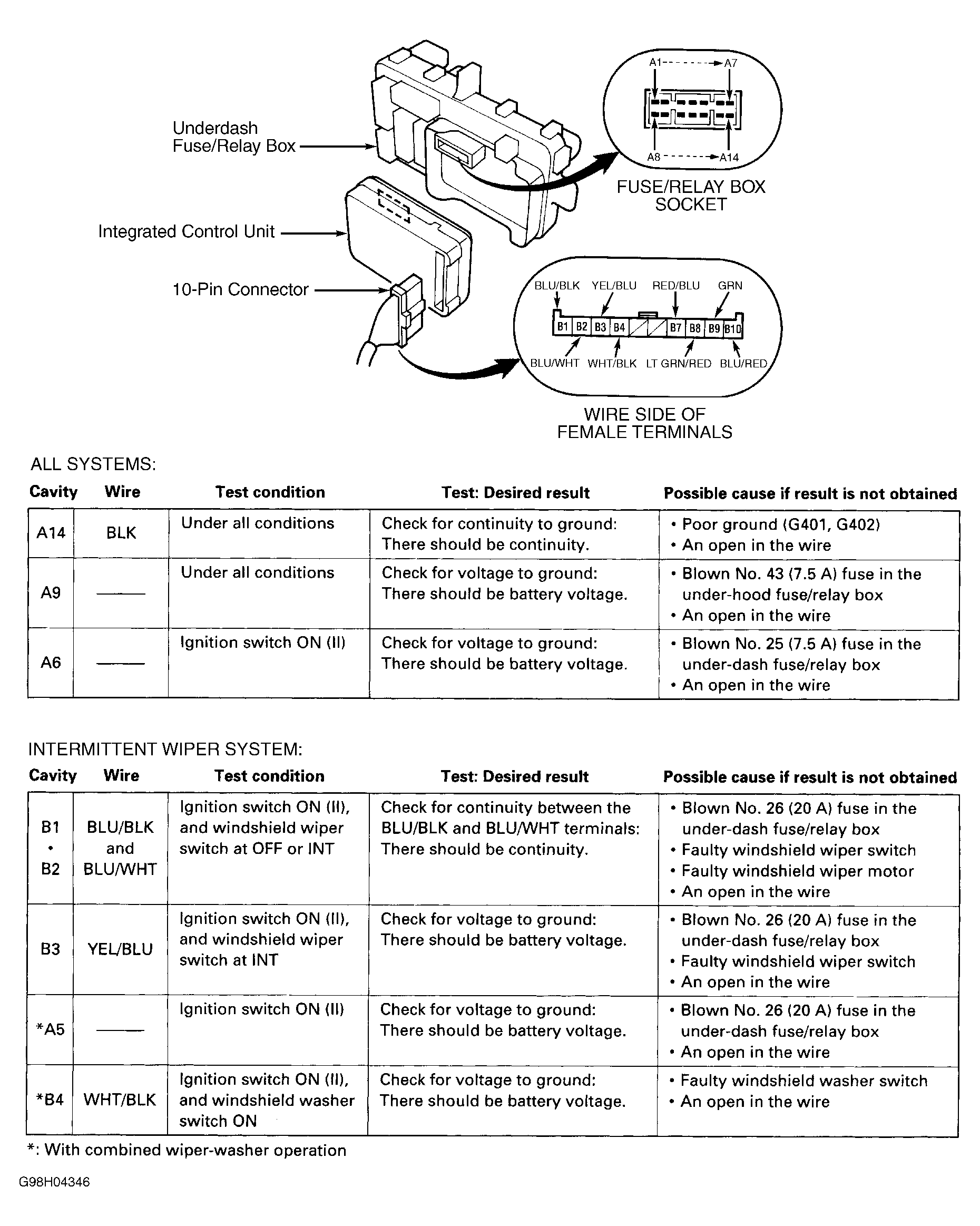 Home >> Honda >> 2000 >> Prelude Base, Automatic >> Repair and Diagnosis (Single Page) >> Accessories & Equipment >> Wiper/Washer Systems >> Wiper System & Washer System >> System Tests >> Integrated Control Unit Input Tests >> Civic