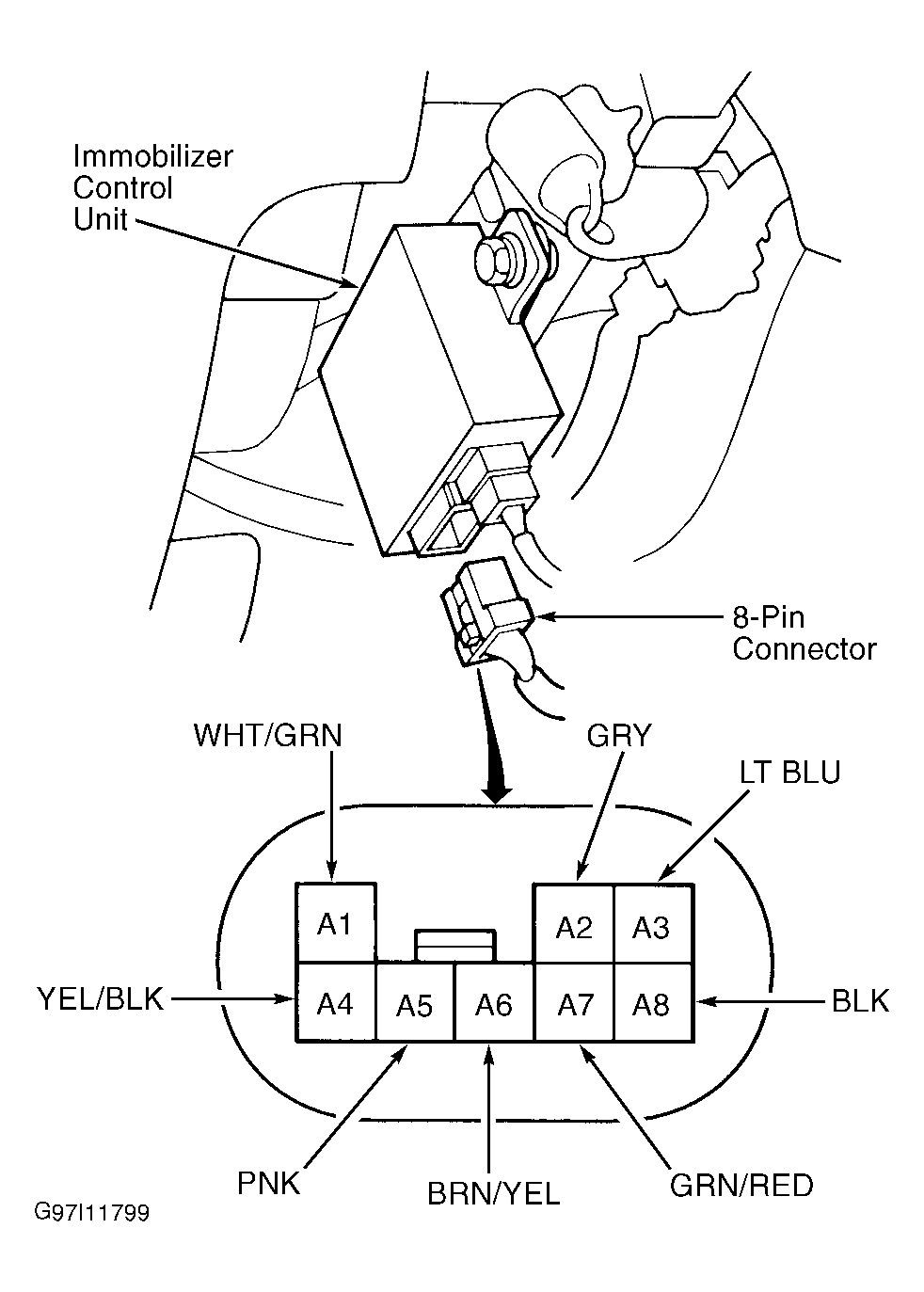 Fig 1: Identifying Immobilizer Control Unit 8-Pin Connector Terminals
