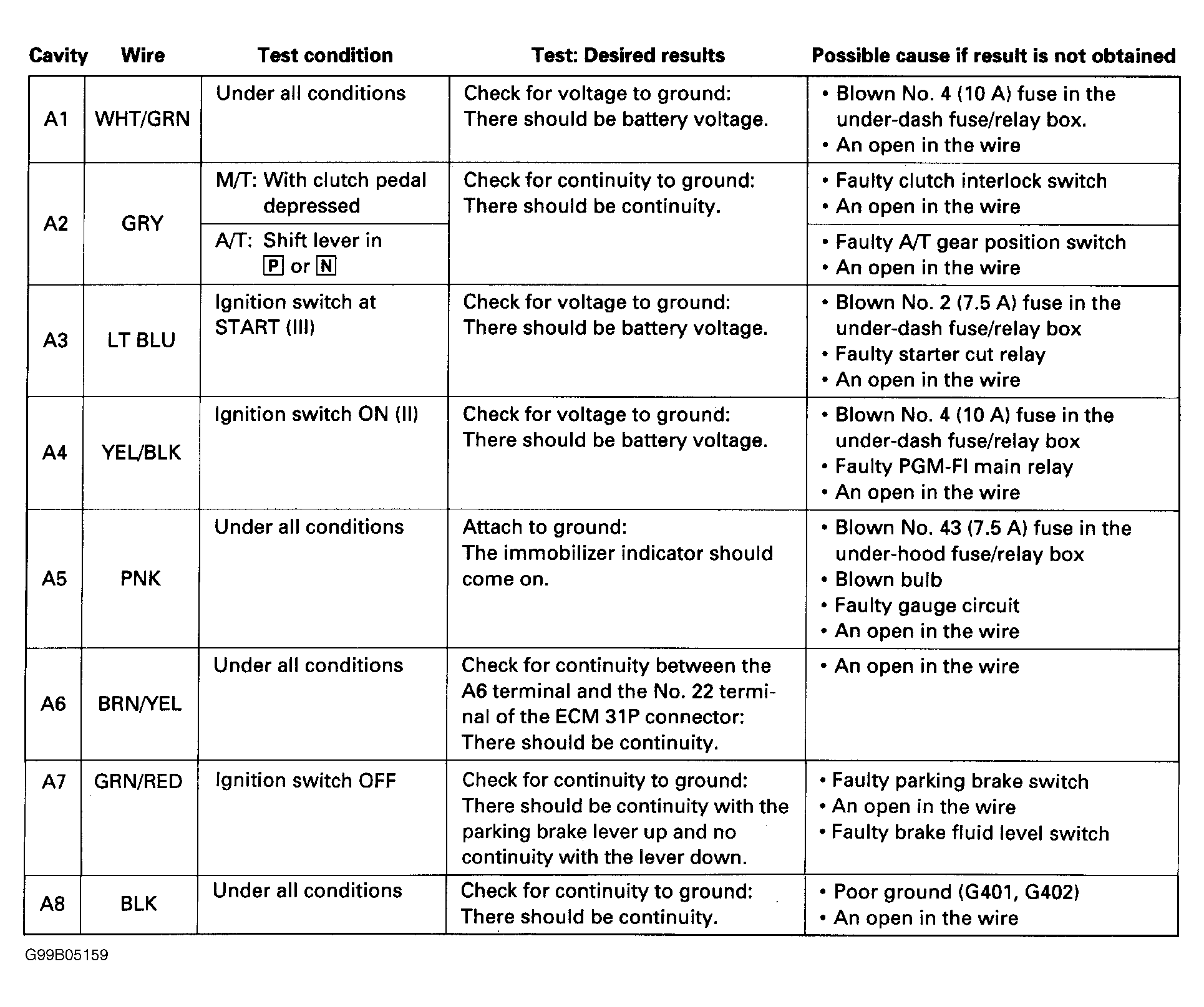 Home >> Honda >> 2000 >> Prelude Base, Automatic >> Repair and Diagnosis (Single Page) >> Body & Frame >> Door Locks >> Immobilizer Systems >> Component Tests >> Control Unit Input Test