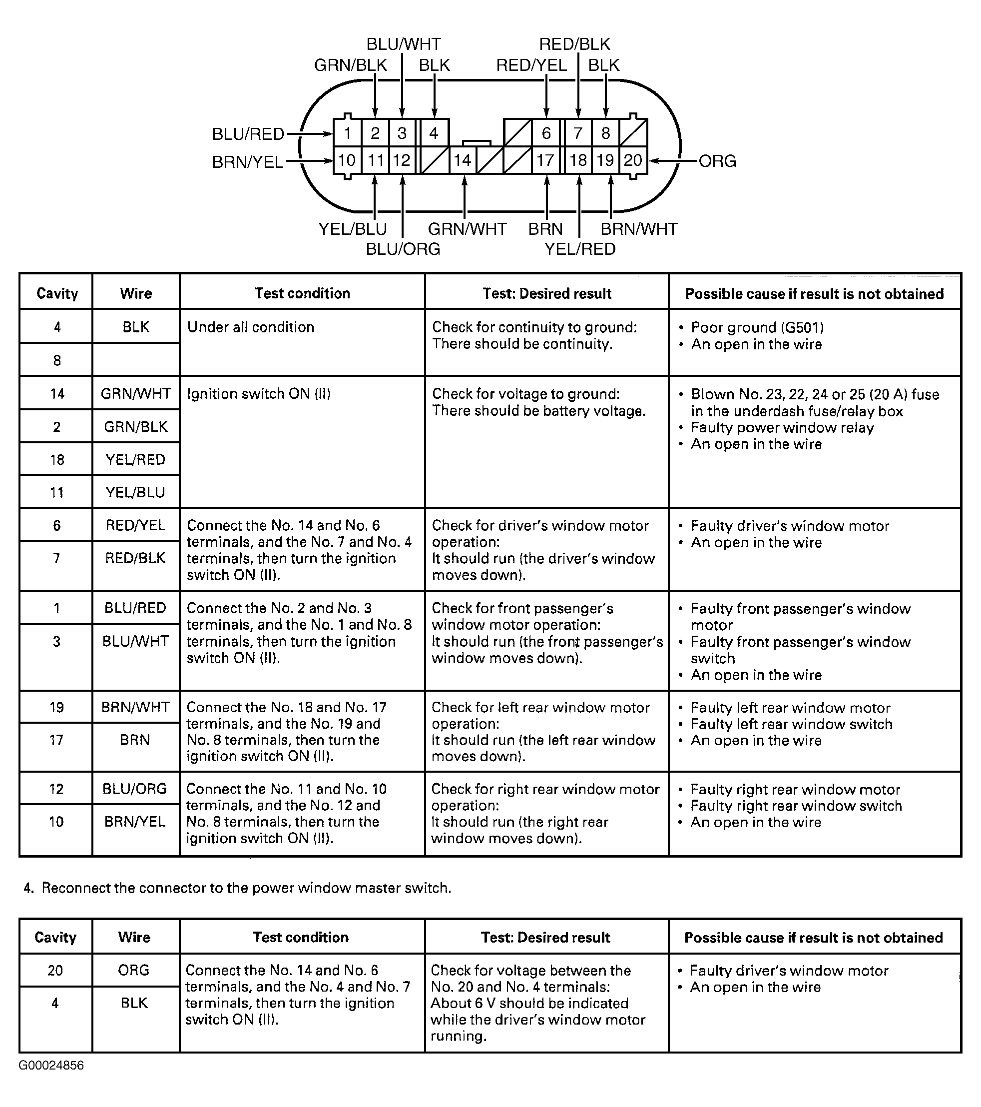 Home >> Honda >> 2001 >> CR-V EX, Standard >> Repair and Diagnosis >> Body & Frame >> Windows >> Power Window System >> Component Tests >> Switch Input Tests