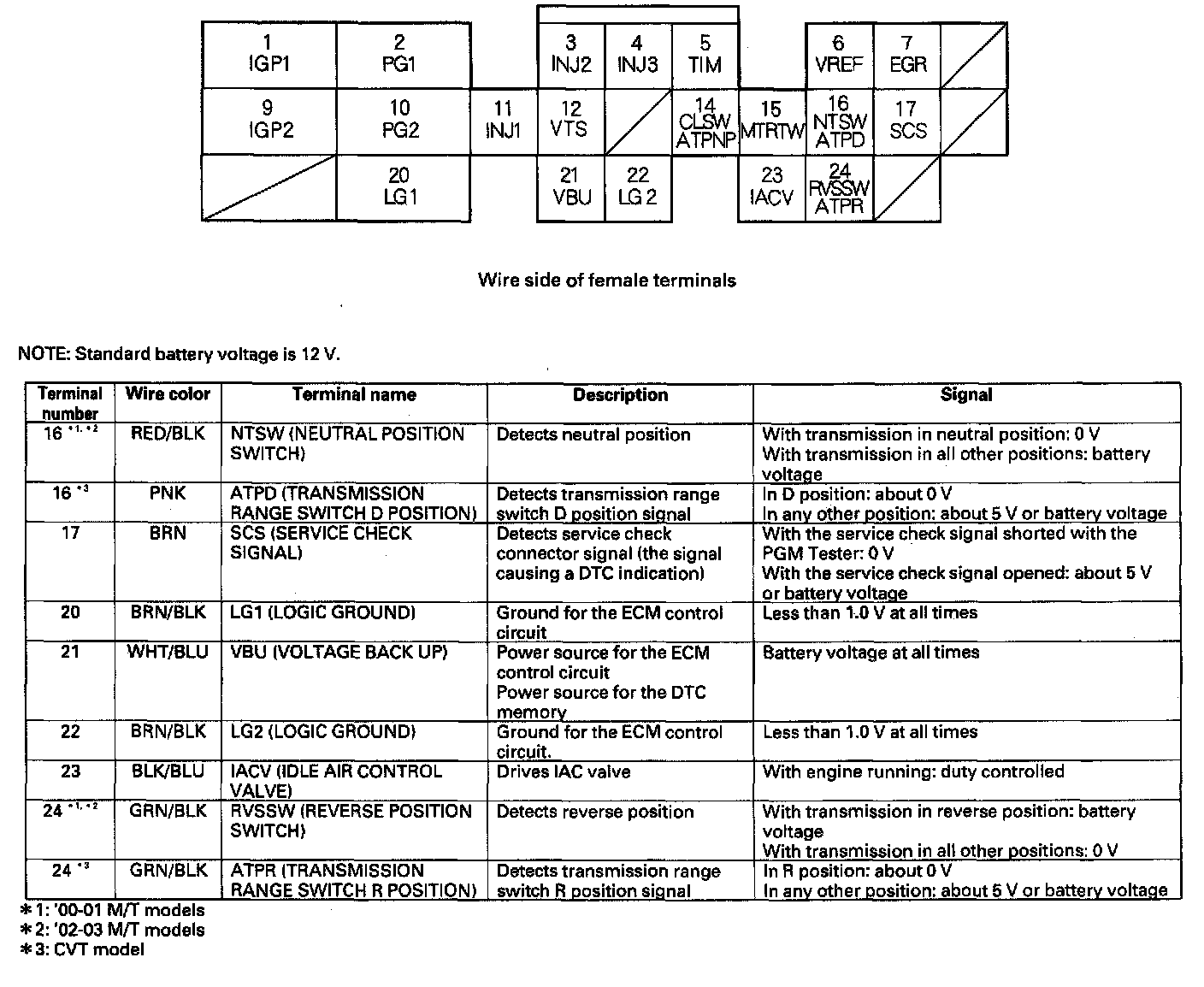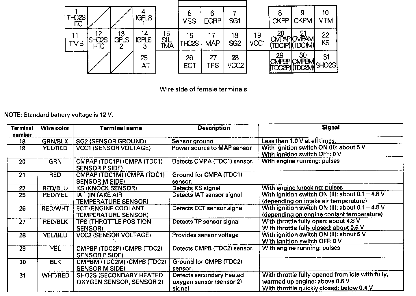 Home >> Honda >> 2001 >> Insight L3-1.0L Hybrid >> Repair and Diagnosis >> Powertrain Management >> Computers and Control Systems >> Relays and Modules - Computers and Control Systems >> Engine Control Module >> Testing and Inspection >> Pinout Values and Diagnostic Parameters