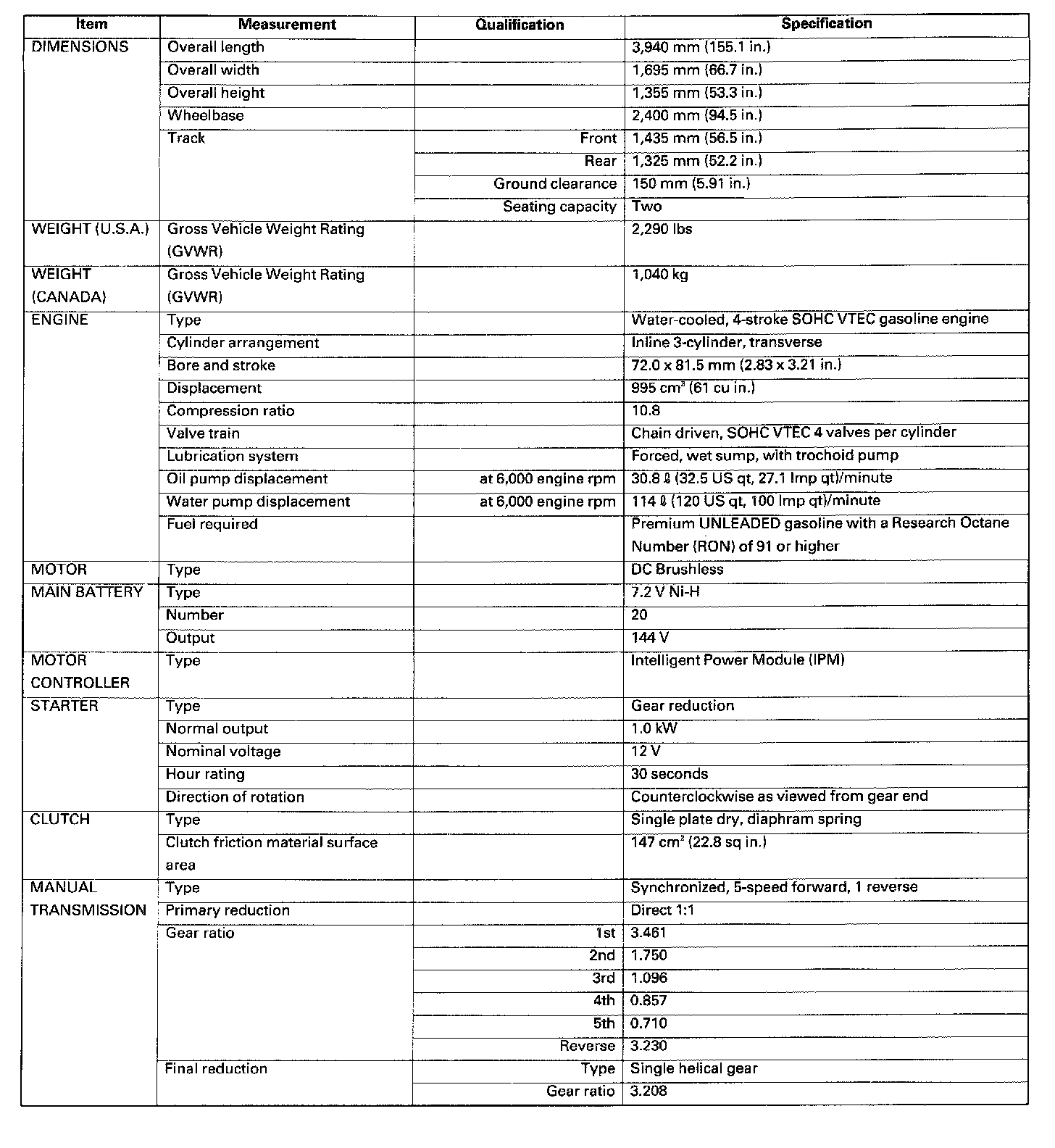 Insight L3-1.0L Hybrid