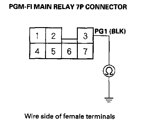 3. Check for continuity between body ground and the PGM-FI main relay 7P connector terminal No.3.