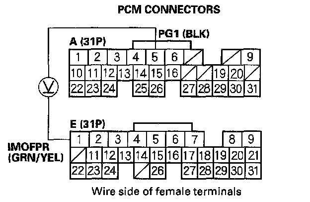 13. Reconnect PCM connector E (31P) and the PGM-FI main relay 7P connector.