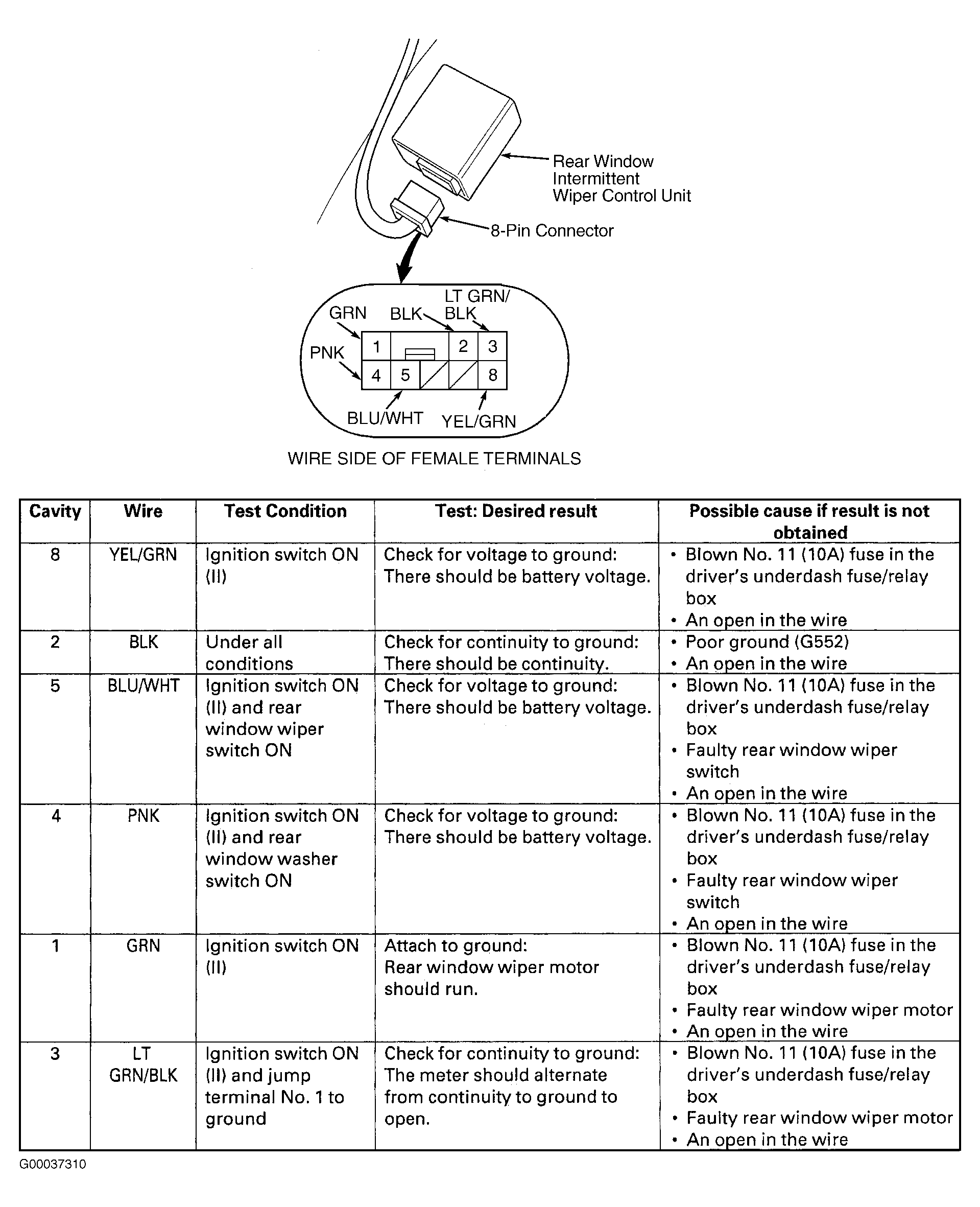 Fig 1: Rear Window Intermittent Wiper Control Unit Input Test (Odyssey)