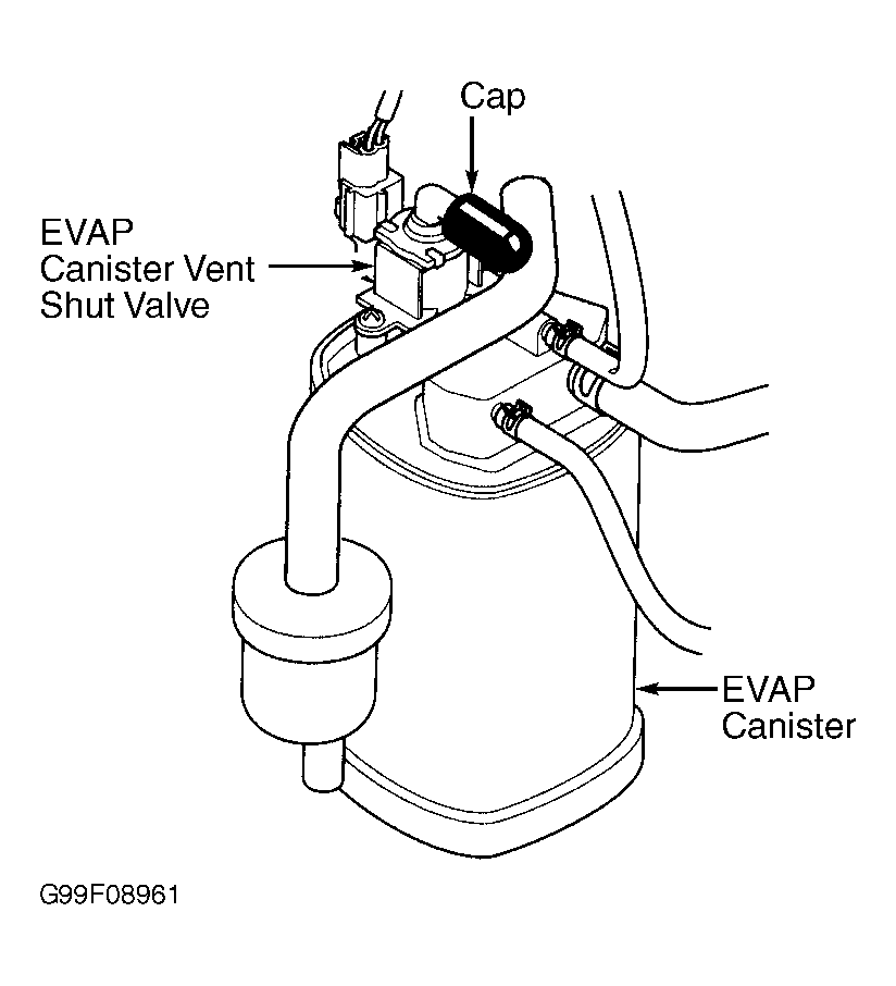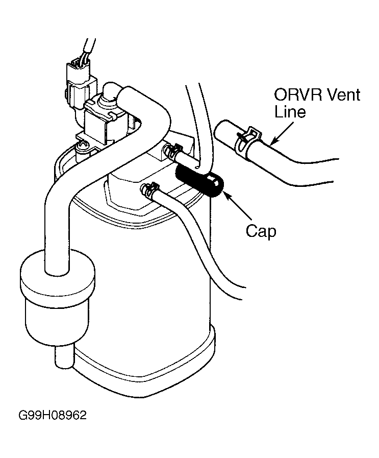 - Turn ignition off. Disconnect On-Board Refueling Vapor Recovery (ORVR) vent line from EVAP canister, and cap open port. See Fig 3