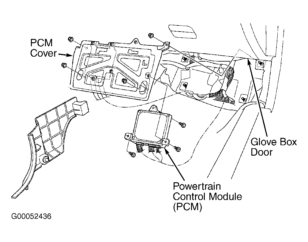 Engine Control Module (ECM) is used on vehicles equipped with manual transaxles/transmissions. Powertrain Control Module (PCM) is used on vehicles equipped with automatic transaxles/transmissions. ECM will be referred to as PCM. PCM is located under carpet in passenger foot well. See Fig 1 .