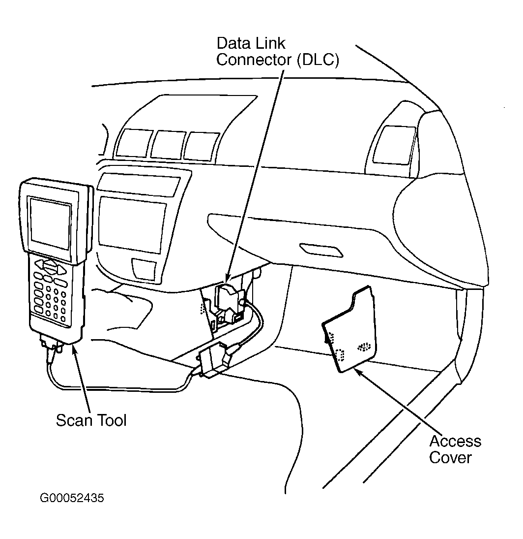 Start engine and check MIL. If MIL stays on, turn ignition off, and connect PGM Tester or OBD-II scan tool to DLC. DLC is located behind right side of center console. See Figure . Turn ignition on. If DTCs are displayed, check for and record freeze frame data, current data and any other PCM data, then proceed to appropriate DTC test. See DIAGNOSTIC TROUBLE CODE IDENTIFICATION  . For scan tool operation, refer to manufacturer's instructions. If MIL stays on and no DTCs are displayed, diagnose MIL circuit. See MALFUNCTION INDICATOR LIGHT CIRCUIT DIAGNOSIS  . If MIL does not come on, but there is a driveability problem, diagnose concern by symptom. See TROUBLE SHOOTING - NO CODES article.