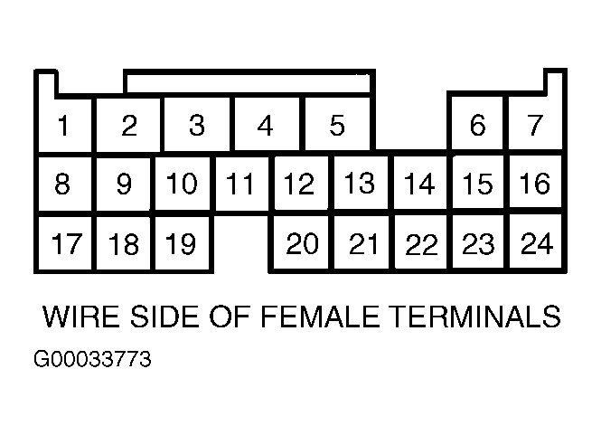 4. Turn headlights and ignition off. Disconnect PCM connector "B" (24-pin connector). Check continuity of White/Green wire between PCM connector "B" (24-pin connector) terminal No. 6 and generator 4-pin connector terminal No. 2. See Figure and Figure . If continuity is present, repair generator. See appropriate GENERATORS & REGULATORS article in STARTING & CHARGING SYSTEMS. If continuity is not present, repair open in White/Green wire between generator and PCM connectors. See WIRING DIAGRAMS article.