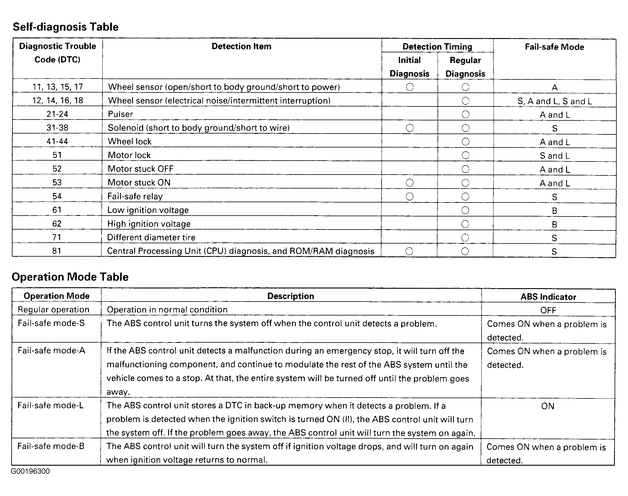 See Fig 1 for self diagnostic table and operation mode table.