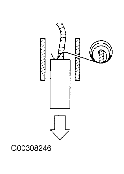 - Insert the brush (A) into the brush holder, and bring the brush into contact with the commutator, attach a spring scale (B) to the spring (C). Measure the spring tension at the moment the spring lifts off the brush. See Fig 5. If the spring tension is not within specification, replace the spring. See STARTER SPECIFICATIONS .