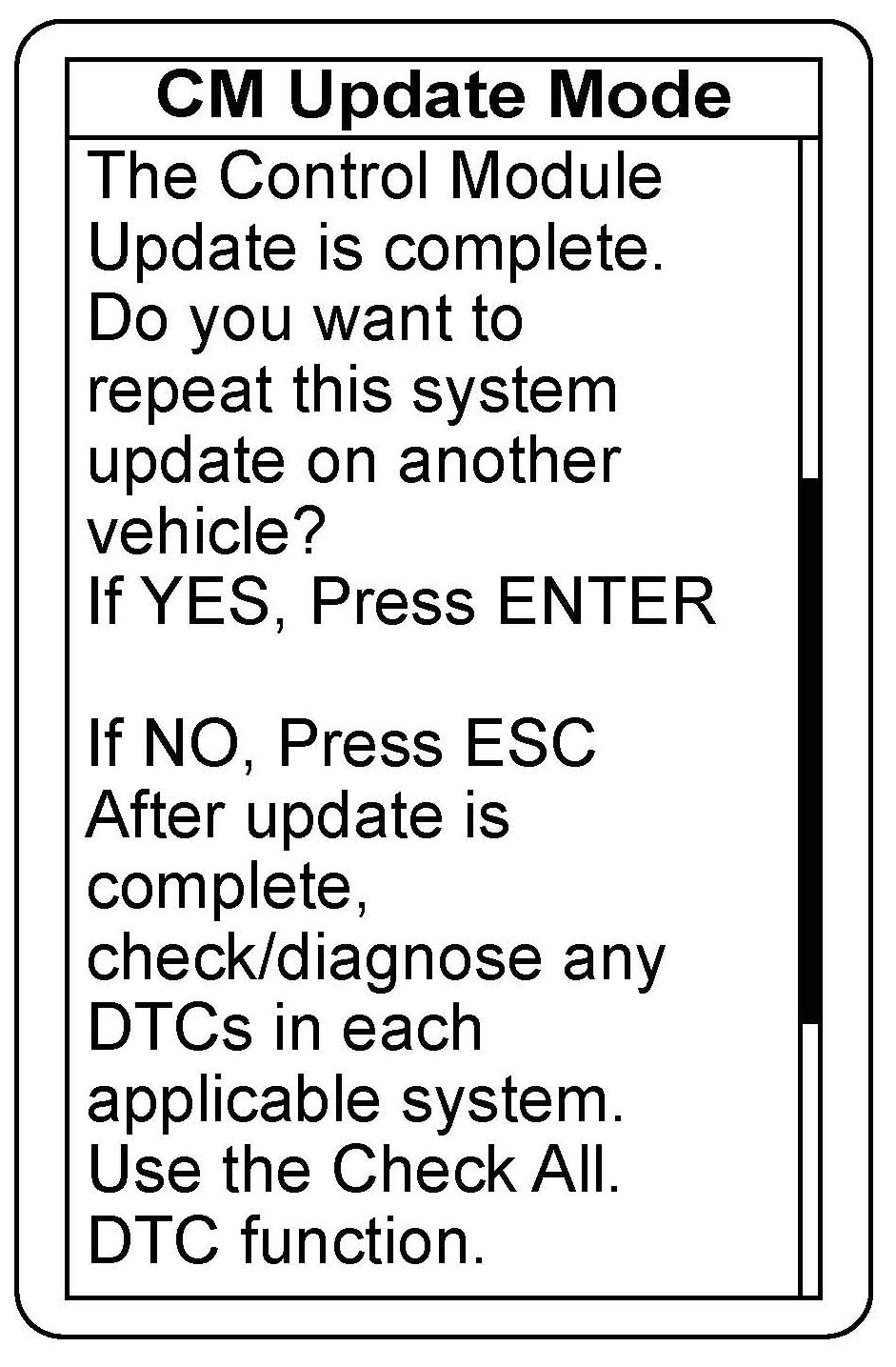 11. After the MVCI has copied the files, a confirmation screen appears. Press ENTER to update the control unit/module, or press ESC to exit.