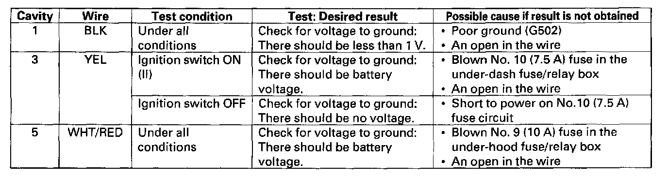 Home >> Honda >> 2002 >> CR-V LX 2WD L4-2.4L >> Repair and Diagnosis >> Body and Frame >> Locks >> Keyless Entry >> Keyless Entry Transmitter >> Testing and Inspection >> Component Tests and General Diagnostics >> Keyless Receiver Unit Input Test