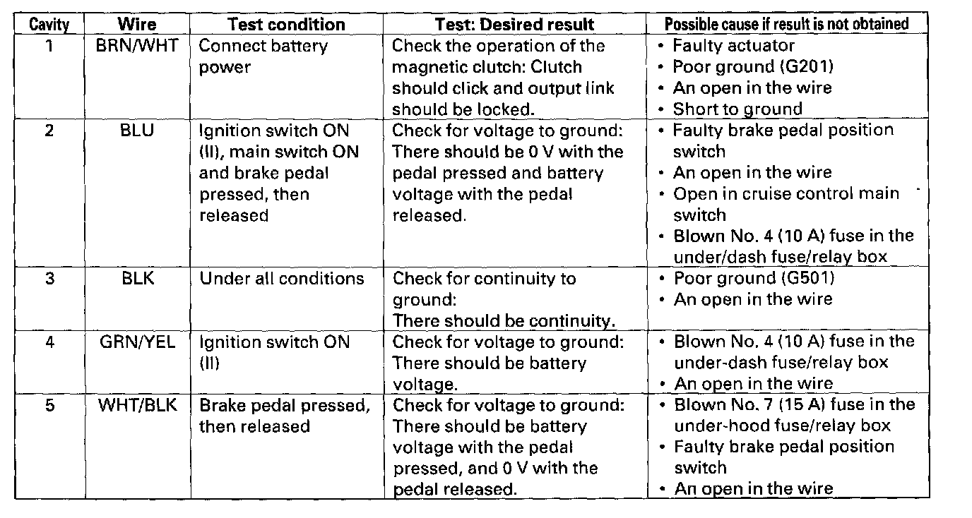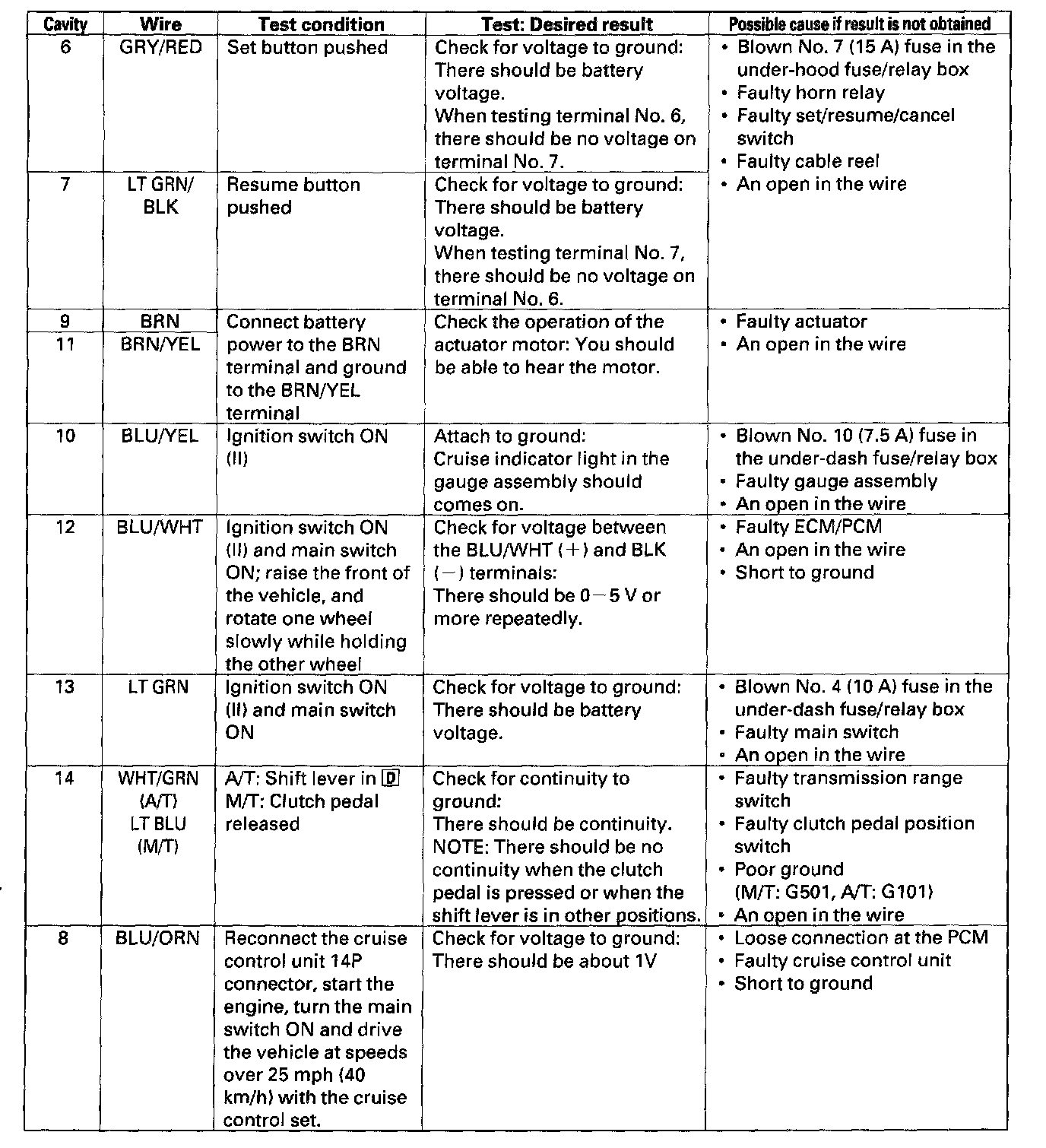 Home >> Honda >> 2002 >> CR-V LX 2WD L4-2.4L >> Repair and Diagnosis >> Cruise Control >> Cruise Control Module >> Testing and Inspection