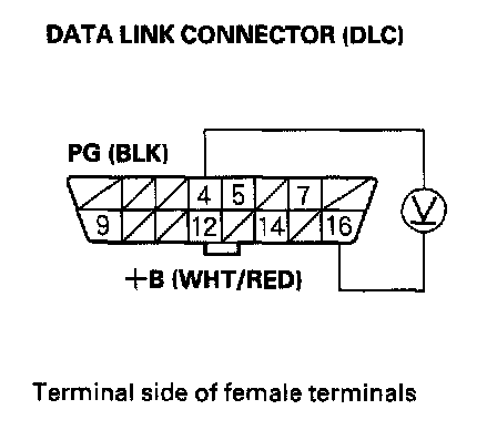 3. Measure voltage between DLC terminals No. 5 and No.16.