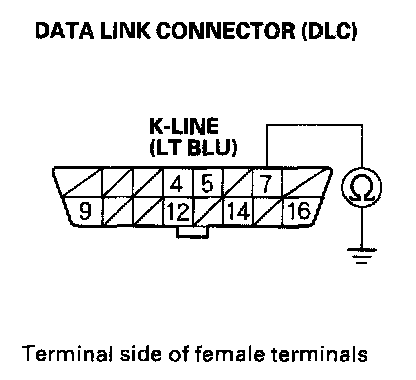 8. Check for continuity between DLC terminal No. 7 and body ground.