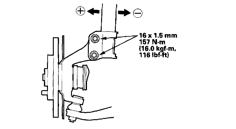 NOTE: The camber angle can be adjusted up to ±15' (center of tolerance) by replacing one damper pinch bolt with the adjusting bolt. The camber angle can be adjusted up to ±30' by replacing both upper and lower damper pinch bolts with the adjusting bolts.