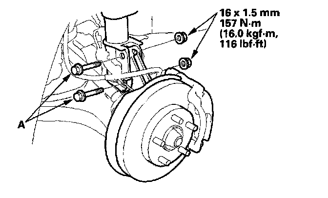 7. Replace the damper pinch bolts with the adjusting bolts (A), and adjust the camber angle.